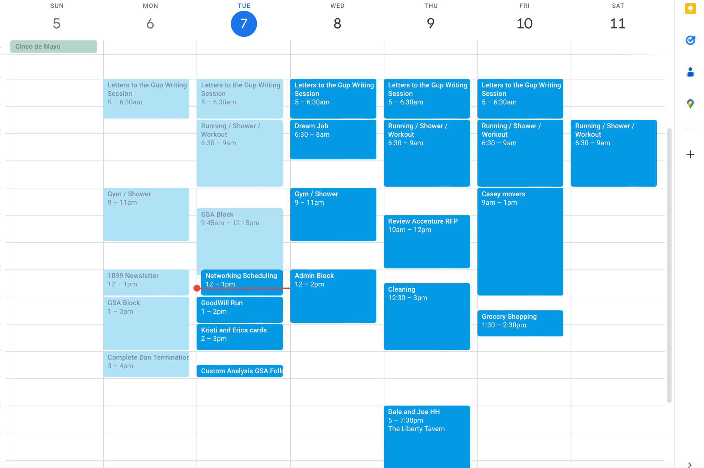 At the beginning of the week, I schedule what I want to work on in my calendar.